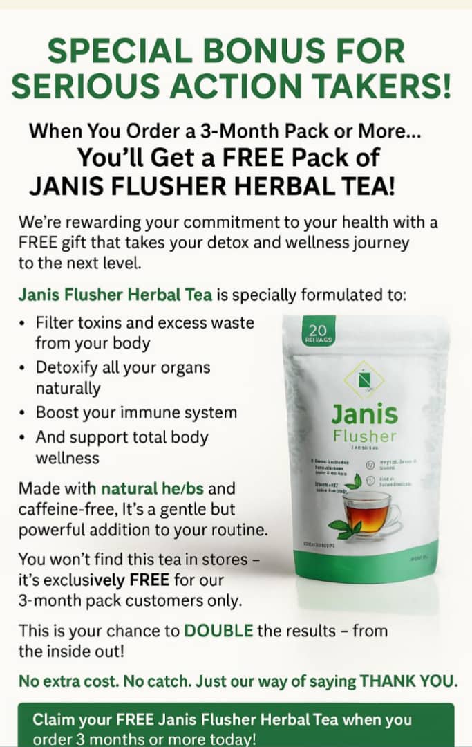 π NOTE: Every 3 or 6-Month Pack comes with a FREE Janis Flusher Detox Tea to speed up your liver healing naturally.